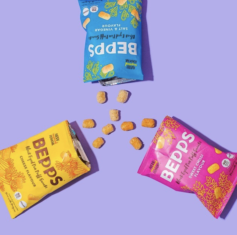 Founder, Eve, loved eating Black-Eyed Peas when she was growing up, but her daughter preferred to eat crisps and snacks for dinner. In her frustration, Eve had her lightbulb moment and created a range of Black-Eyed Pea puff snacks. The result is Bepps - which is 100% plant-based, as well as being low in fat and high in protein. Bepps currently come in three flavours; Salt and Vinegar, Sweet Chilli and Cheese.