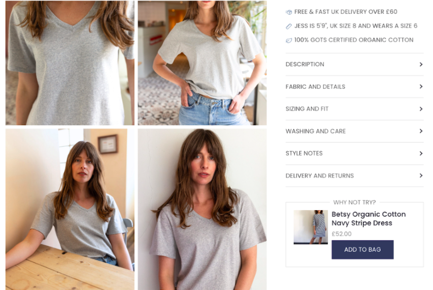 In terms of your website design, it’s so important to make the images as easy as possible to view, meaning you need to clearly show there's more to scroll through with thumbnails and arrows on your product page.