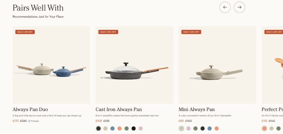By suggesting complementary products or accessories or showing bundle deals, you’re not only encouraging customers to spend more but actually being helpful and showing them more of what they might like.