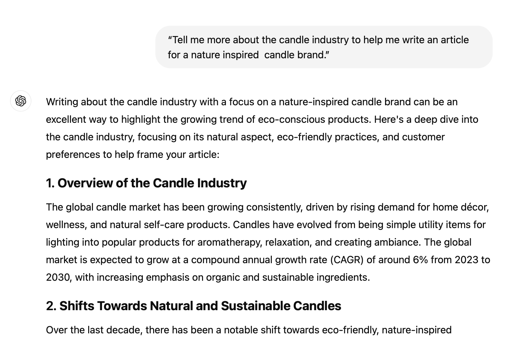 “Tell me more about {insert industry] to help me write an article for a [insert product] brand.”